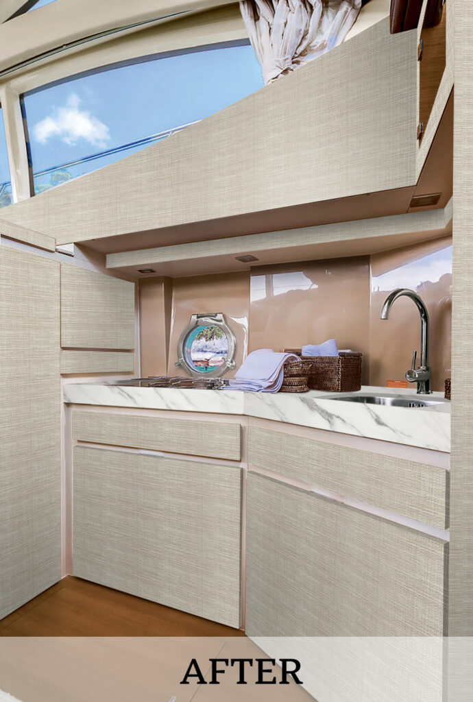 Extremely durable, stain and scratch resistant surface coating film, available in diverse patterns, colors, and textures perfectly imitating surfaces made of wood, metal, paint, fabric, stones, leather etc. (over 450 patterns to choose from). These films are an unmatched solution for remodeling the interior of your watercraft at a fraction of the cost when compared to traditional renovations.